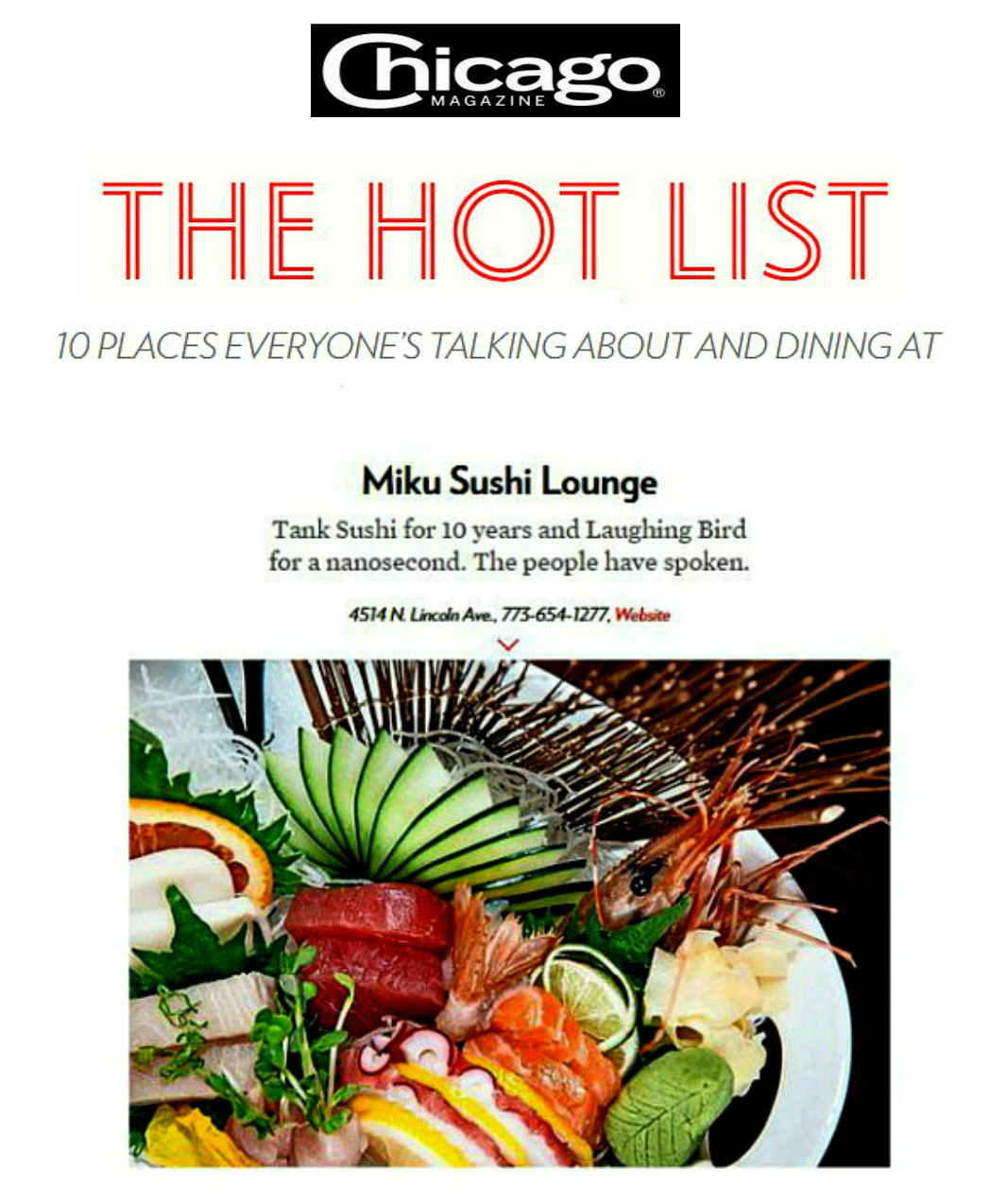 Miku Sushi, 4514 North Lincoln Avenue, Chicago. 773-654-1277.