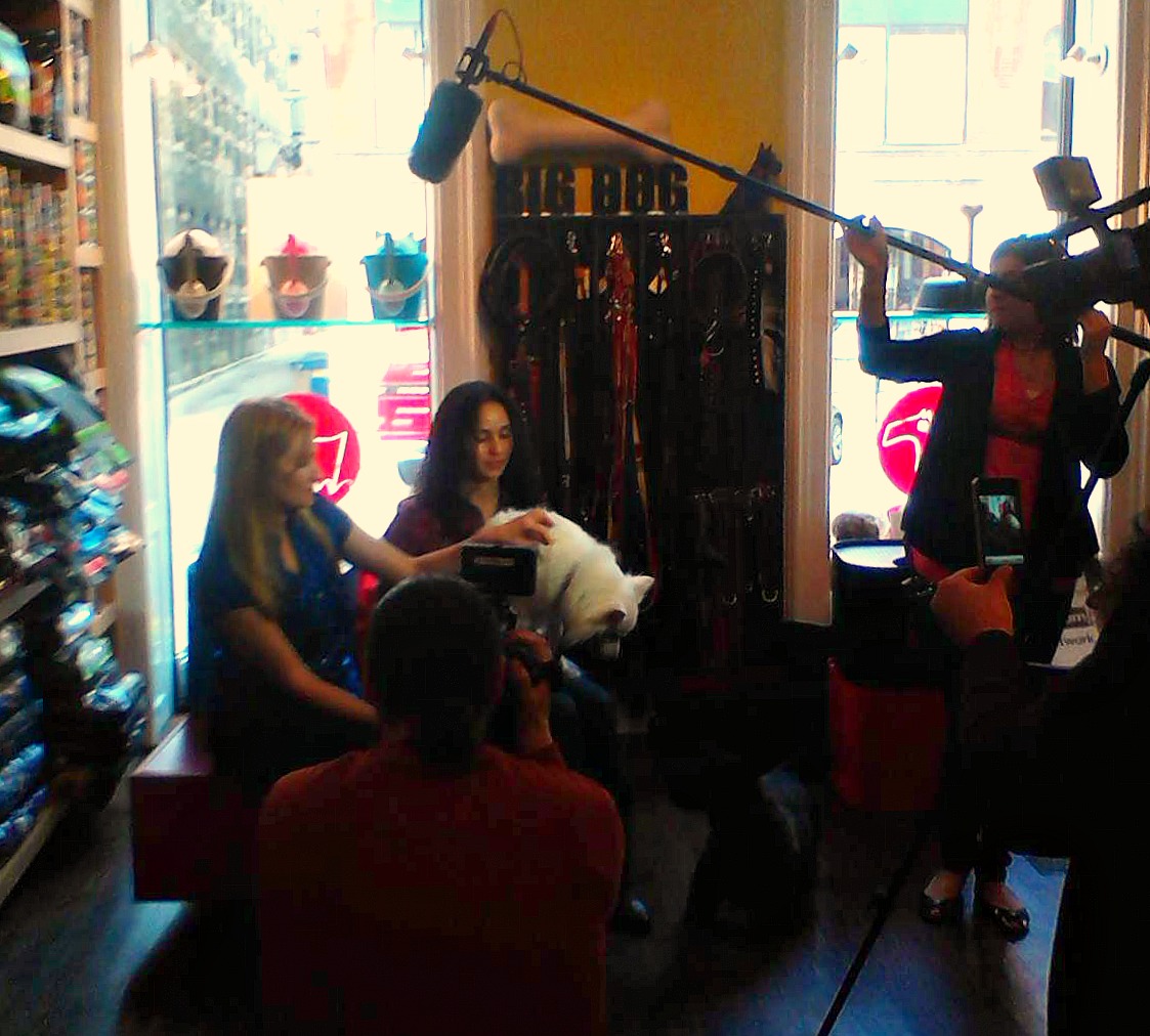 Contestant Mercedes Warren and her dog Kilo with “Chicago Tails” host Tatiana Garrett at For Dog’s Sake new River North location.